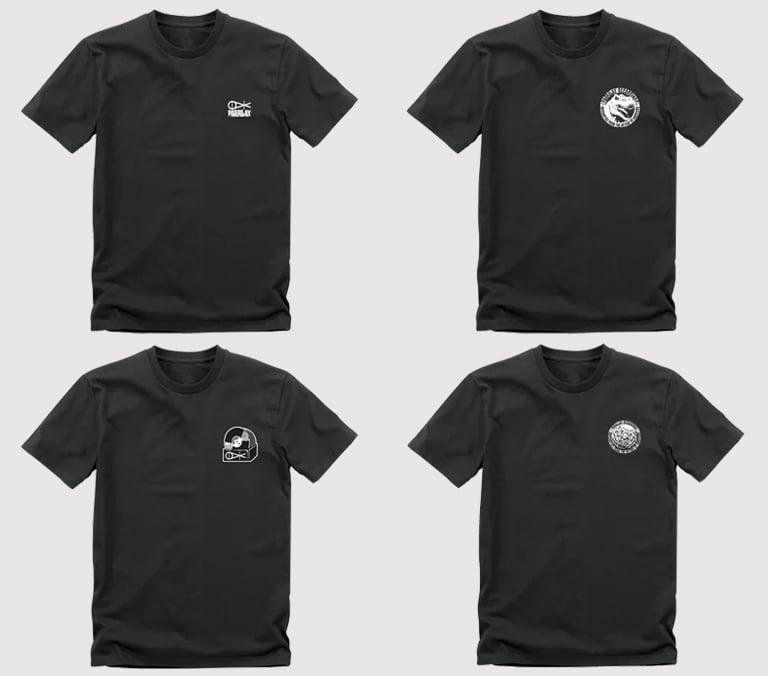 These are different artworks / chestprints, printed on Gildan Cotton Heavy Shirts. Click through the pictures and choose your design and size in the dropdown menu